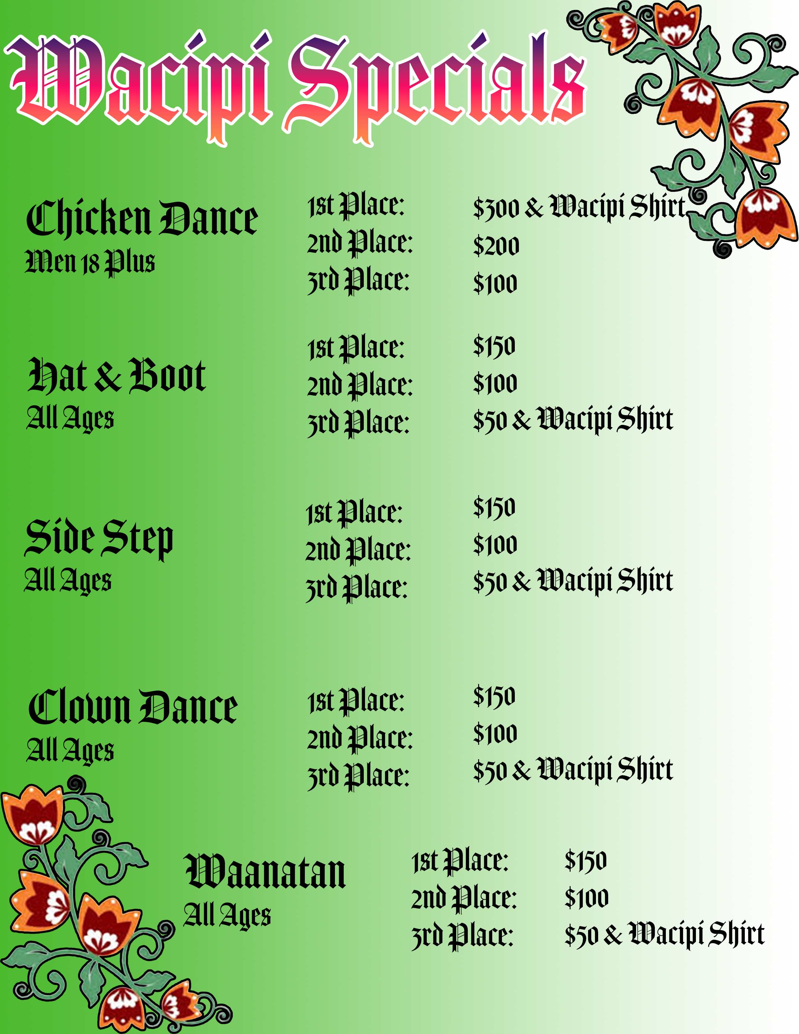 Today, Wacipis are still very much a part of the Native American way of life. Some Wacipis begin as early as March, while most run from June until September and are held every weekend throughout the season. Many families pack up and “go on the circuit,” camping out and enjoying the traditional celebrations. although some traditional Wacipis are still held, the majority are competitive in nature; participants singing and dancing for prize money, while providing spectator entertainment.