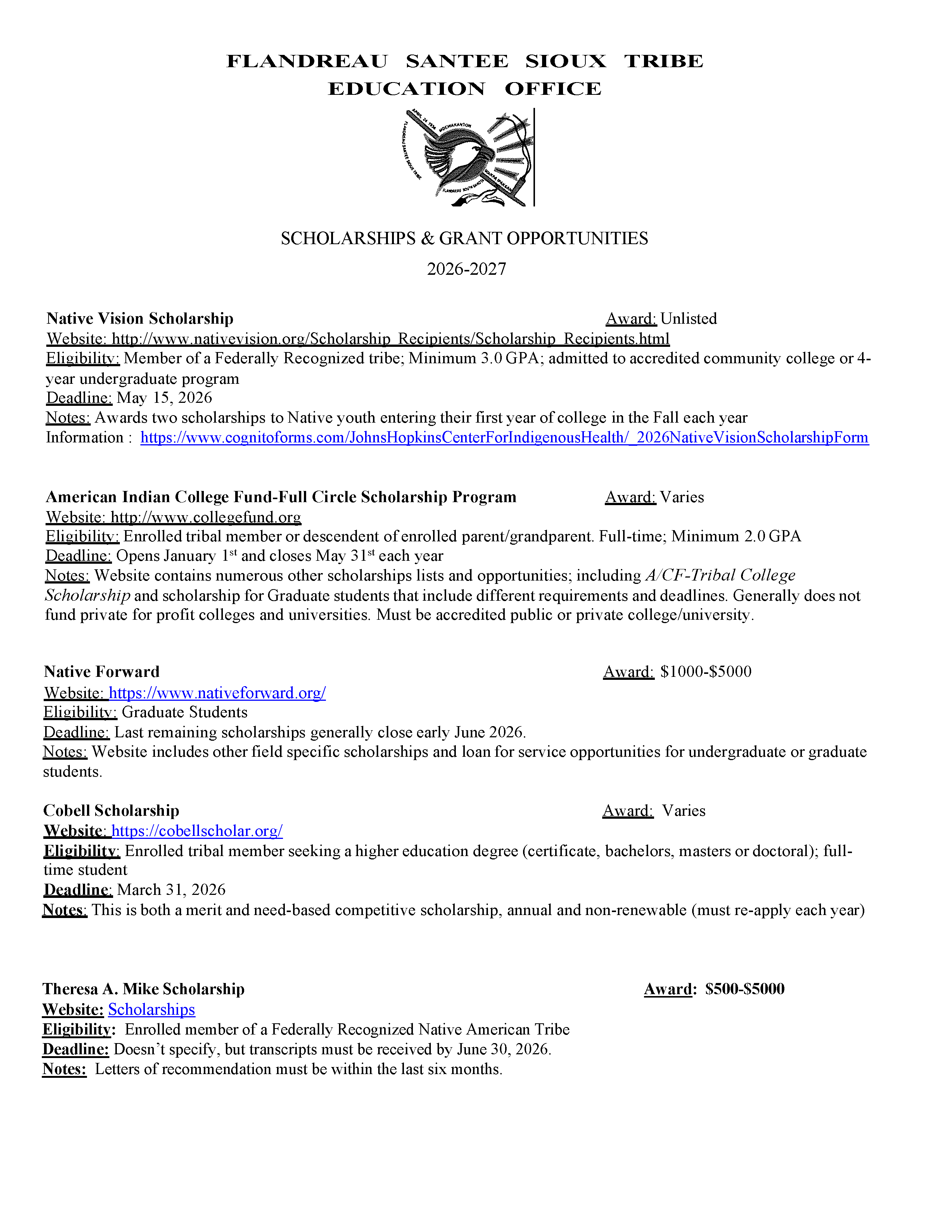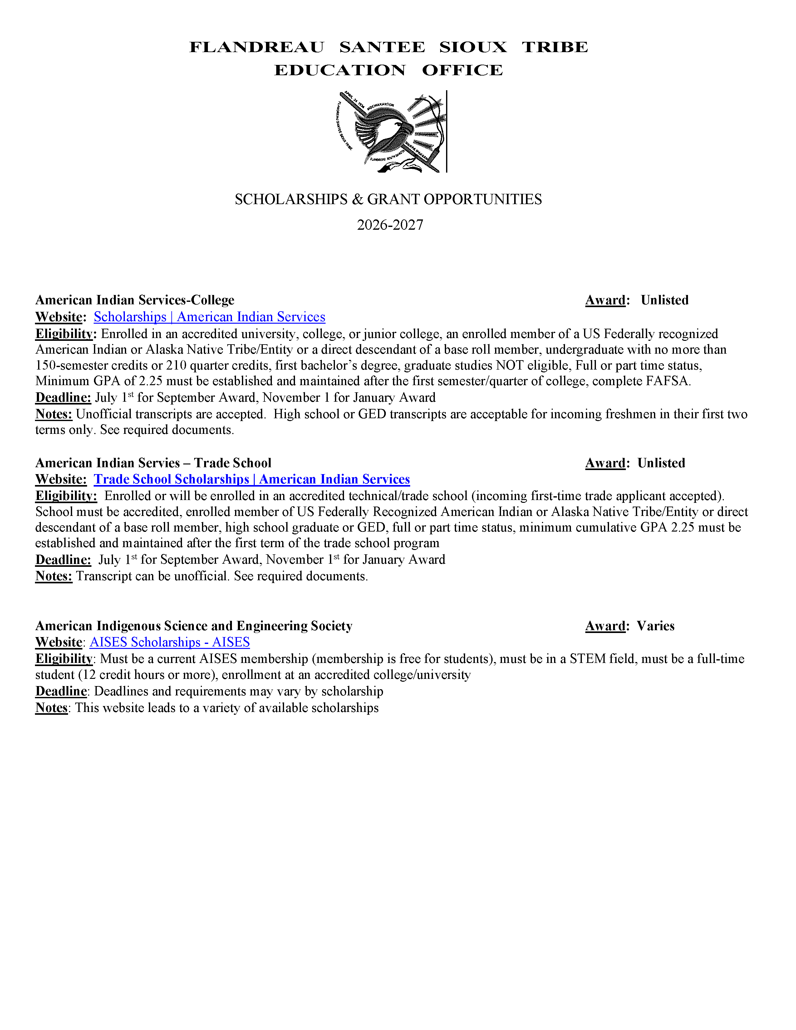 2025 - 2026 Available Sources of Funding